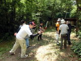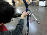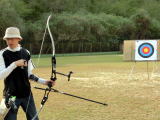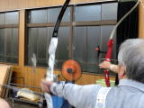 弦の長さが160cmだから、この弓は#62だとか言い始めたので、「いえいえ、リムがたわんでいるから形状どおり当てないと測れないよ」と指摘すると、恥ずかしそうに測り直していました。