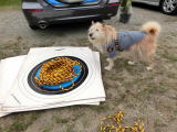 なお、今日の夜練会場は2Kmほど西にあるベビースターラーメンの工場からの香りが漂う中、惠さんは、うらんちゃんとお揃いの赤いベストを着用し、特別な関係をアピールしていました。(藁) |