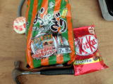 今日の差し入れは、ちょうどサラリーマンの皆さんのボーナス時期にあたり、久々にいろいろな菓子が溢れました。
