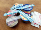 惠壱浪さん(57・会社員)から先週差し入れられたと思われる、印度尼西亜土産のポテトチップスの残骸もありました。わざわざ「TERIYAKI」と銘打ったモノでしたが、一同「なんで・・・」と首をかしげることしきり。