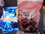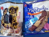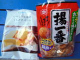 今日の差し入れは「ひとくちバームクーヘン」と「揚一番おかき」でした。
