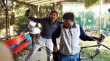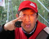 管理人は、仕方なく波平さんのネタ振りに応じて背中を押しました。波平さんは、我が意を得たりと「ナンだコノヤロー」と管理人に襲いかかり、山賊王オーナーさんに写真を撮らせるなど、やりたい放題。