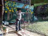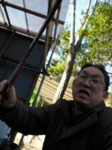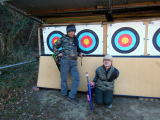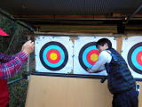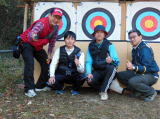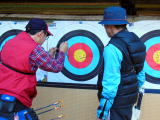 今日はほぼ快晴の寒々とした冬空の中、サンチュウさんと山賊王オーナーさんが、おみくじアーチェリーに挑戦しました。