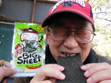 波平さんは、年始の差し入れとして泰国土産の「Taokaenoi」という海苔スナック菓子を持ってきました。