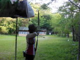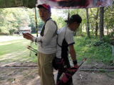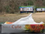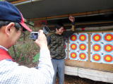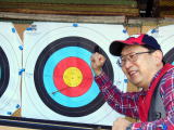 同氏からまたしても、「おみくじアーチェリー」を実施するから集合するようにとのアナウンスがかかり、初射に来ていた「生き物写真家」さんと「ハム焼く号オーナー」さんが呼び出されました。