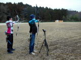 それに対し、午後2時過ぎにひょっこりと現れた酒部弓教の鬼平さんは、「滑車弓に画期的な期待を寄せるのは妄言・絵空事だっ!」と、小筆さんの隣で挑発的な射を繰り広げ、満足したのかどこかへ行ってしまったのでありました。