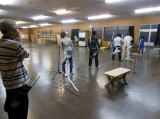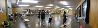 練習に先立ち、年末に計画したとおり、傷んだ畳と的を交換し、畳クズを清掃し、久々にさわやかな会場となりました。