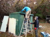 暮れも押し詰まった中、たくさんのメンバーの応援を得て、畳収納小屋を新設(中古ですが)しました。