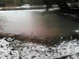 平成30年の初極寒の一日で、隣接の溜池はずうーっと凍ったままでした。